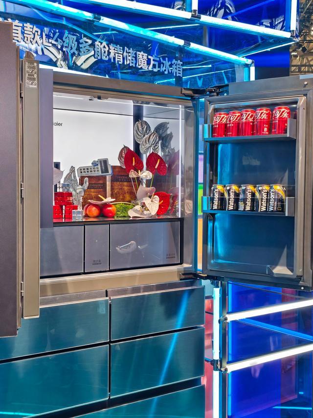 国家统计局数据显示,截至2023年,国内冰箱(柜)平均每百户拥有量已达103.4台。然而就是这么一个基础功能成熟且普及度极高的电器品类,却在AWE上呈现出百花齐放的创新态势,海尔、海信、追觅、容声、LG、TCL等企业各显神通,将保鲜解冻科技、AI食材管理、AI交互卷出新高度。